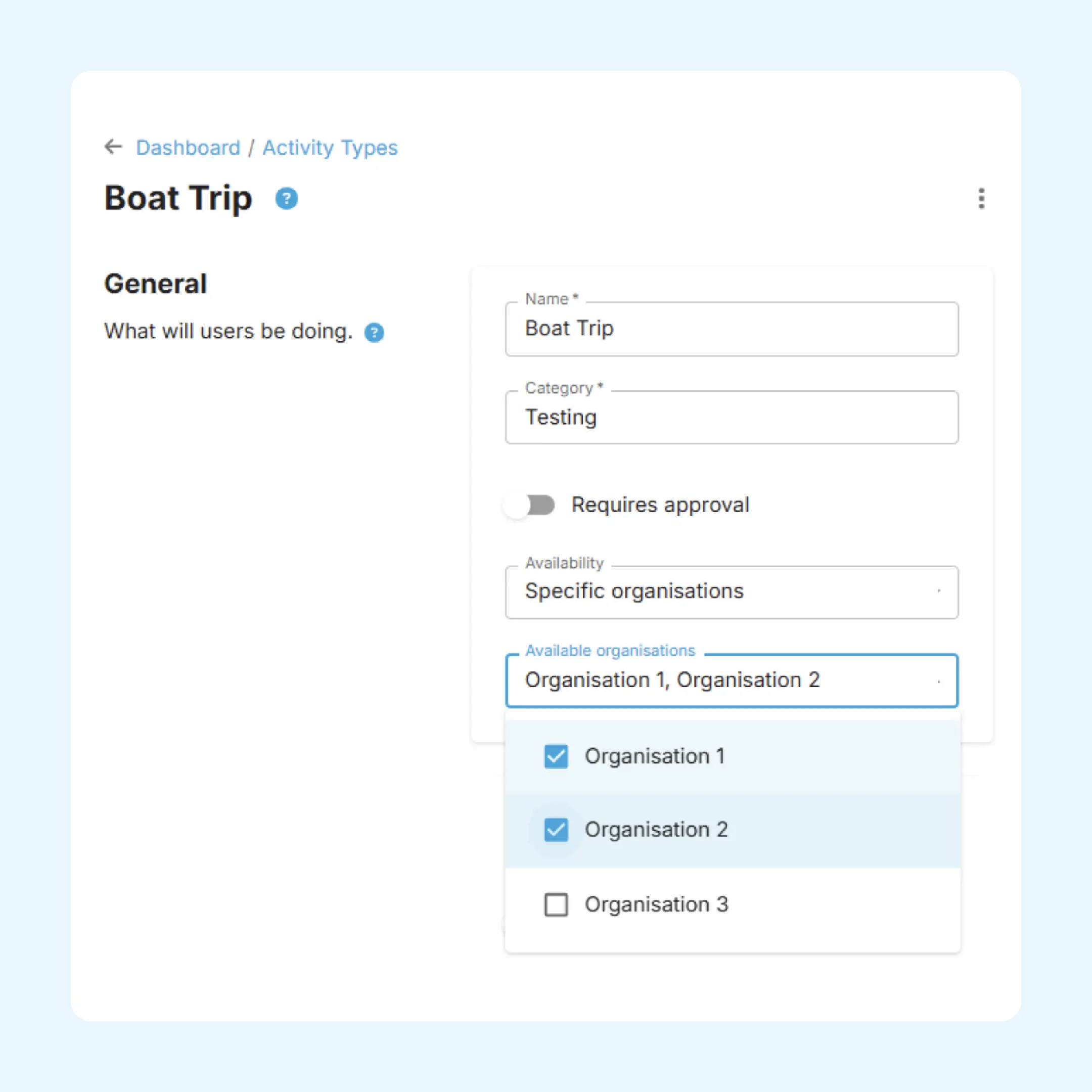 Managing your organisation is about to get much easier. We’re introducing Account Level Items — a flexible new system that lets you manage Activity Types and Risk Assessments directly from your Account view. Account Administrators will have granular control, with the ability to configure availability settings and delegate specific items to chosen organisations within your Enterprise.