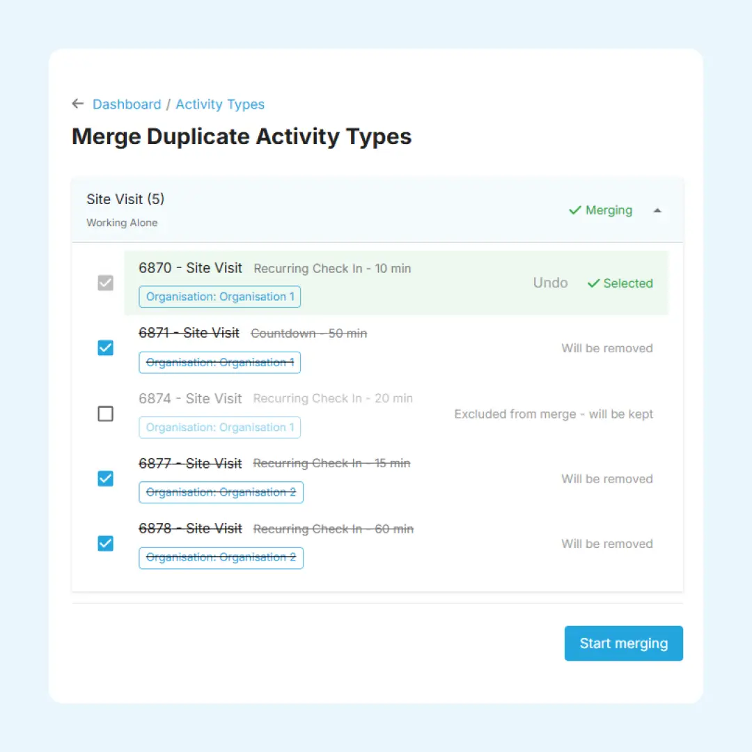 Say goodbye to redundant Activity Types cluttering your Enterprise. Our new Duplicate Wizard will identify and help you consolidate duplicate Activity Types across your entire Enterprise into single, streamlined entries — saving you time and keeping everything organised.