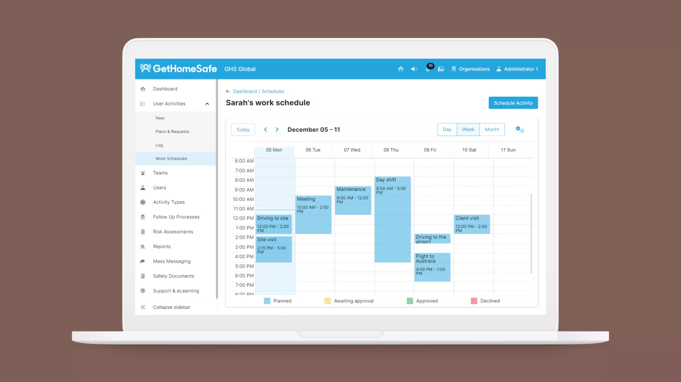 GetHomeSafe has released a new feature called 'Scheduling' that allows users to plan activities at specified dates and times. Scheduling includes work schedules in a calendar that displays upcoming scheduled activities for each user. This feature helps with engaging your users to use GetHomeSafe when expected and triggers alerts when they forget to use it.