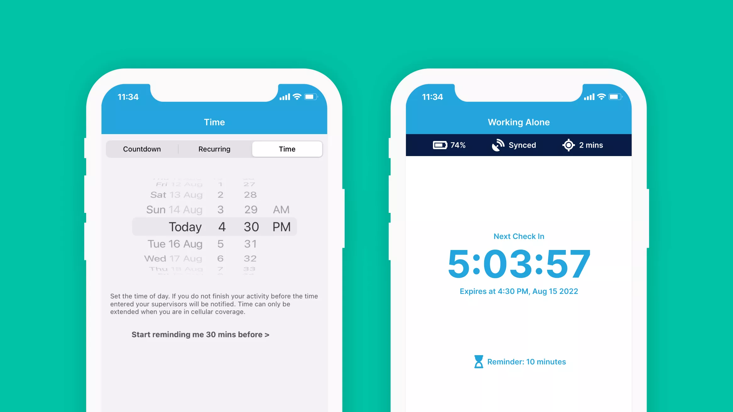 GetHomeSafe has developed a new timer type called time of day (displayed as time in the GetHomeSafe app). The time of day timer type allows users to set when they expect their activity to finish. When starting an activity using the time of day, the activity timer will be generated from when the activity is started to the expected finish time.
