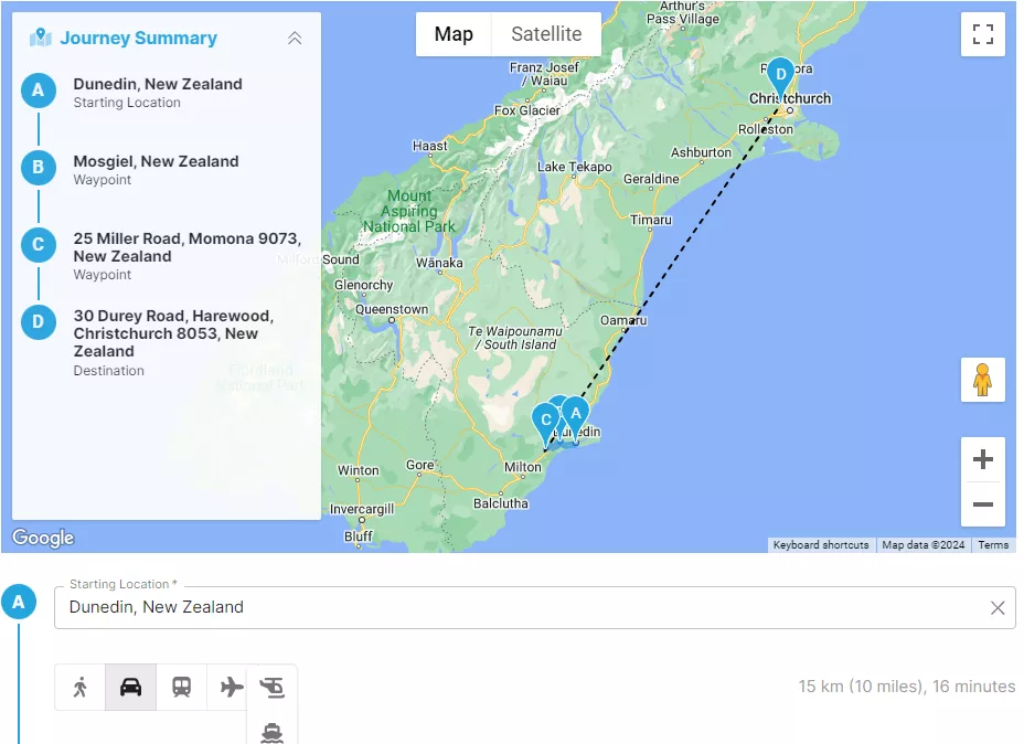 Did you know that you can add waypoints to your journey? These can be break stops on your journey and reflect changes in mode of travel such as cars, boats and flights!