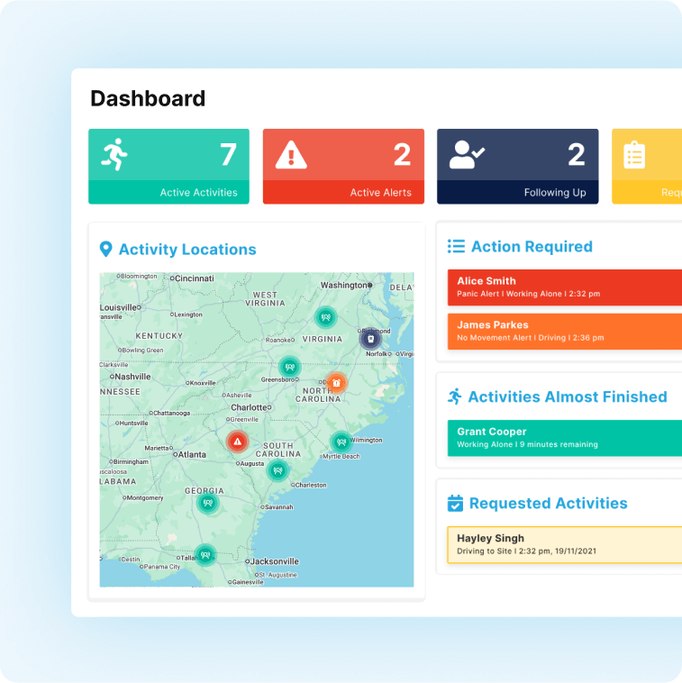 Designed for mobile and isolated workforces. Track and support your teams wherever their work takes them.