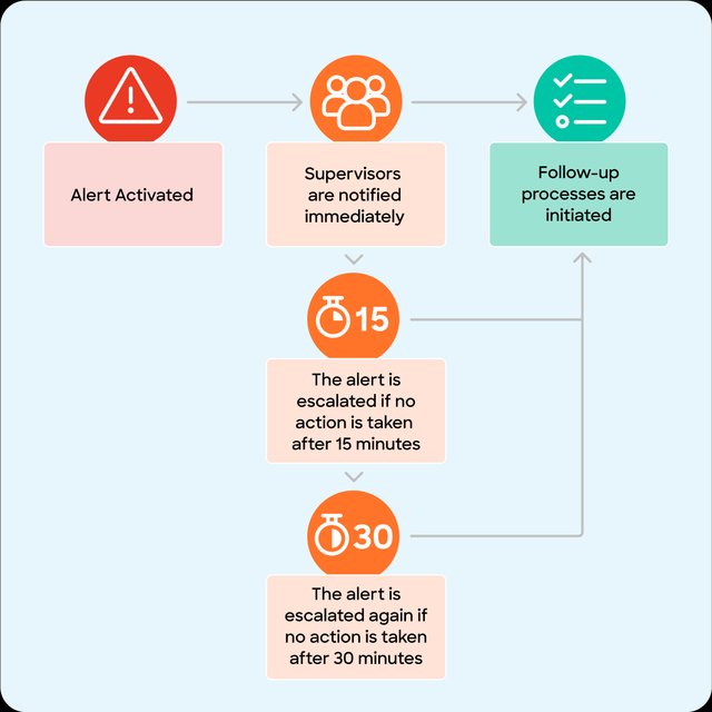 You can configure a 'follow-up' process for each alert type, which is bespoke to your team and is presented as a step-by-step guide on what you would like to happen for each alert type.