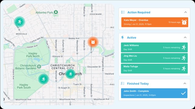 - Specialised check-in protocols for remote construction sites