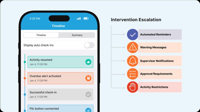 - Automated welfare check-ins and overdue alerts